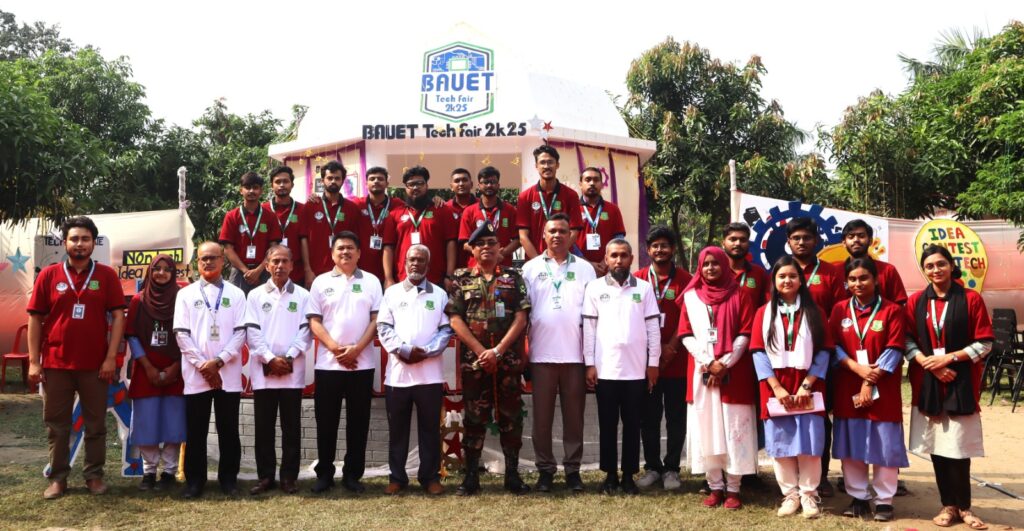 নাটোরের বাগাতিপাড়ায় বাংলাদেশ আর্মি ইউনিভার্সিটি অব ইঞ্জিনিয়ারিং এন্ড টেকনোলজি (বাউয়েট) ক্যাম্পাসে ক্লাব সমূহের সহযোগিতায় দিনব্যাপী প্রযুক্তি মেলা ও প্রতিযোগিতা অনুষ্ঠিত হয়েছে। সোমবার বিশ্ববিদ্যালয়ের মাননীয় উপাচার্য ব্রিগেডিয়ার জেনারেল এসএম লুৎফর রহমান প্রধান অতিথি হিসেবে ফিতা কেটে অনুষ্ঠানের উদ্বোধন করেন। উদ্বোধনের পর তিনি মেলার বিভিন্ন স্টল পরিদর্শন করেন এবং শিক্ষার্থীদের উদ্ভাবনী উদ্যোগের প্রশংসা করেন। এসময় অনুষ্ঠানের প্রধান অতিথি বলেন, “বিশ্ববিদ্যালয়ে অধ্যয়নরত সকল ছাত্র-ছাত্রীদের জন্য এই উদ্ভাবনী প্রযুক্তি মেলা আয়োজন করা হয়েছে। আমি সত্যিই অভিভূত। আজকের এই অনুষ্ঠান প্রমাণ করে, আমরা চাইলেই যে কোন অসম্ভবকে সম্ভব করতে পারি। আশা করি এই প্রতিযোগিতা জাতীয় পর্যায়ে প্রযুক্তিগত অগ্রগতি ও উদ্যোক্তাদের উৎসাহিত করবে।”